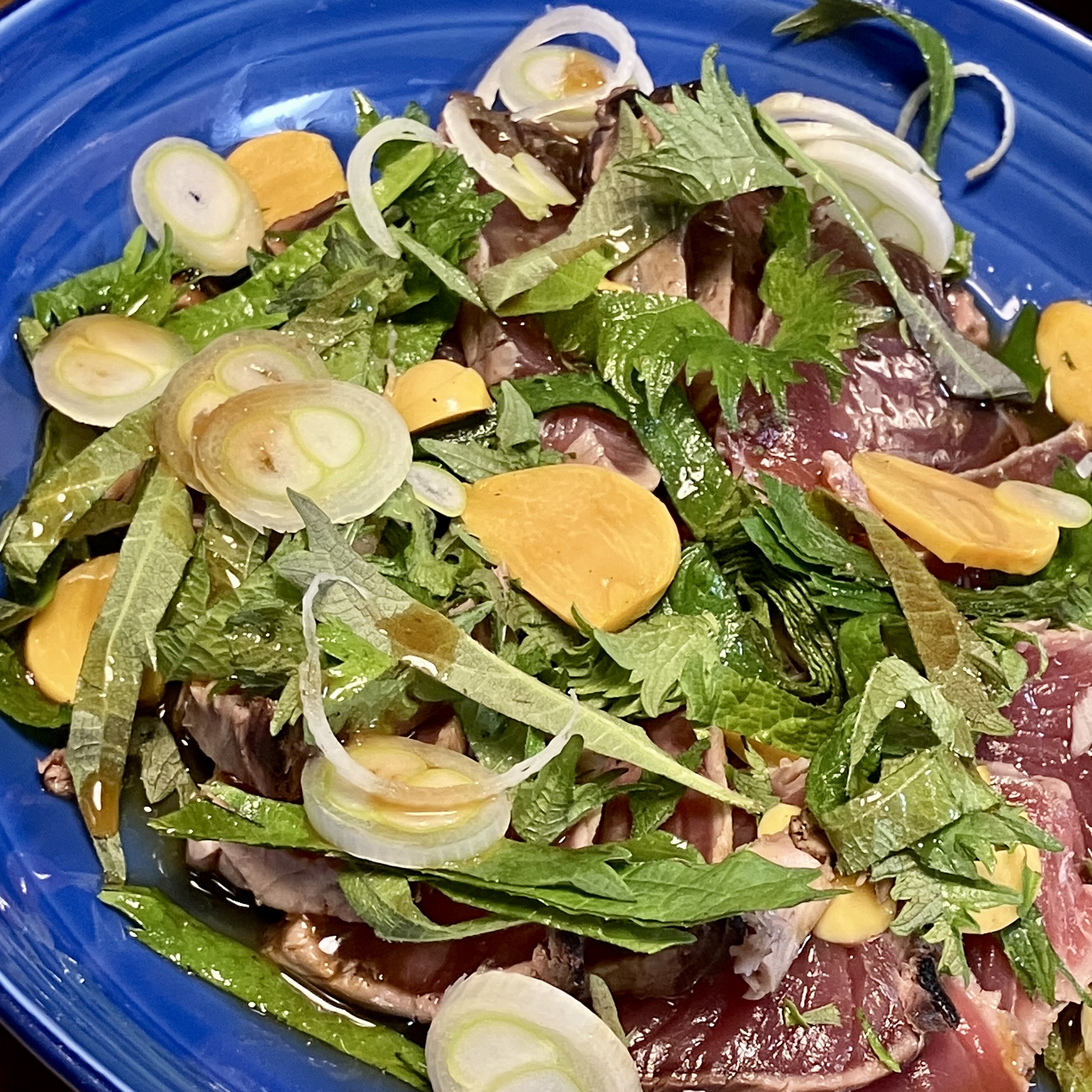 薬味いっぱいのかつおのたたきを作りました!美味しかった。